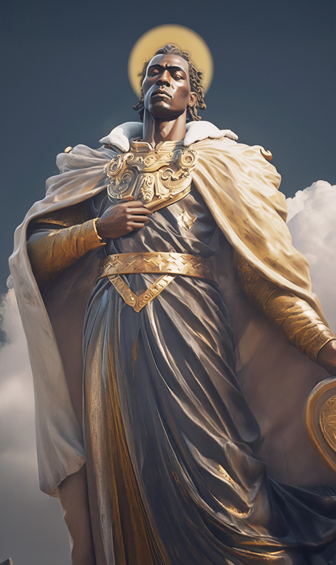 Dès le XIIIe siècle, en Germanie, l’iconographie le représente en chevalier noir, dans une armure rutilante. Cette vision héroïque et respectueuse d’un homme noir est rare au Moyen Âge.